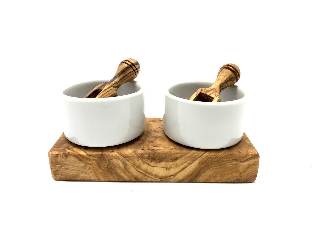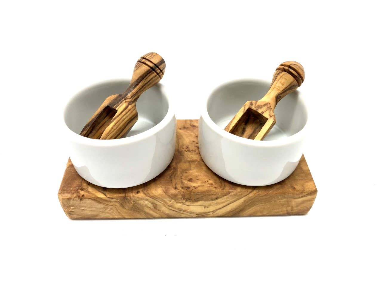 2er Salzschälchen FANO2 mit Salzschippchen, Olivenholz