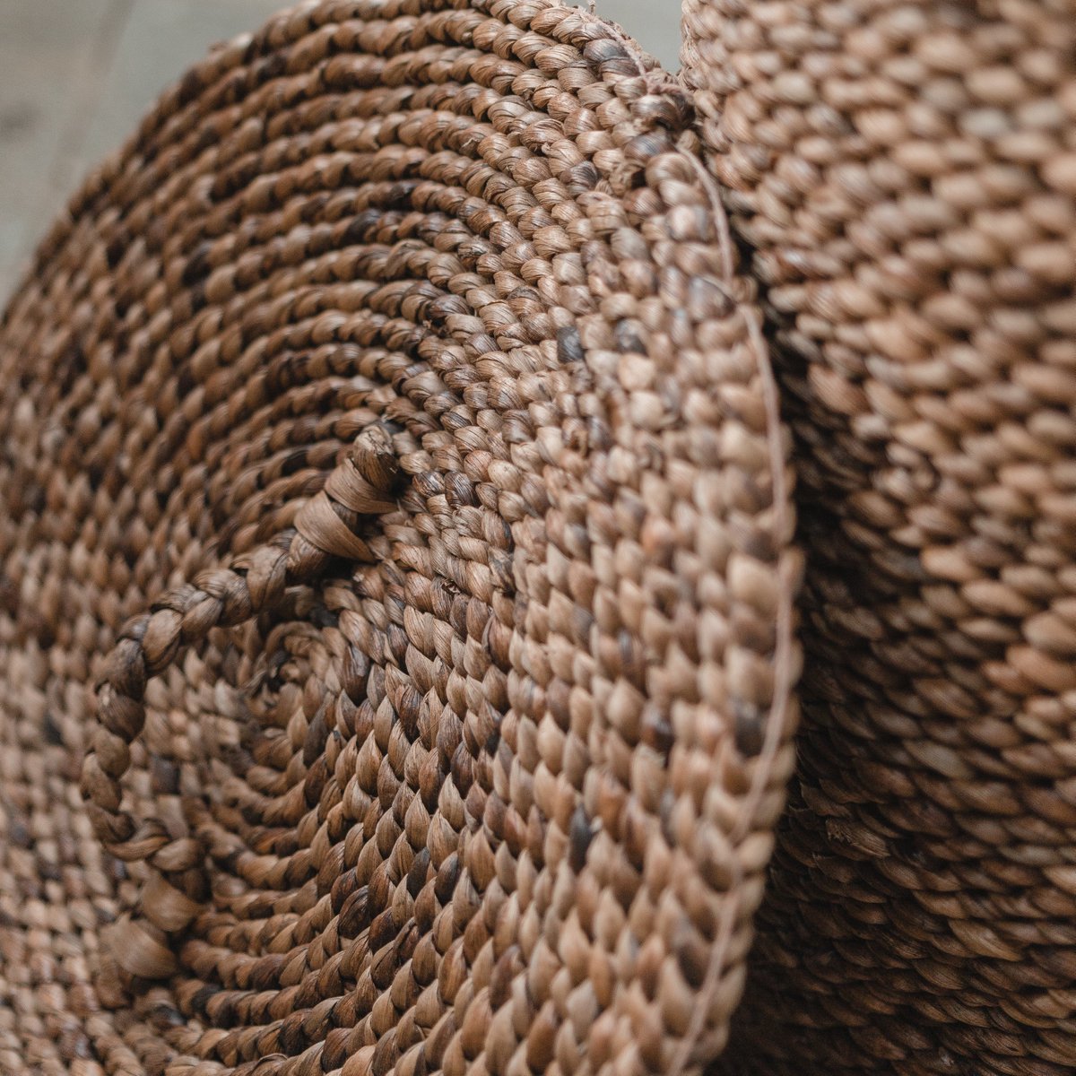 Die Wasserhyazinthe ist eine tropische Wasserpflanze, die an Flüssen und Seen wächst. Eigentlich stammt es aus Südamerika, wurde aber auch in Südostasien eingeführt. Dort gilt es als Unkraut, weil es sich unglaublich schnell vermehrt und ganze Gewässer mit einem Blätterteppich bedecken kann. Der daraus resultierende Licht- und Sauerstoffmangel führt zum Absterben aller Lebewesen unter Wasser, weshalb die Pflanzen regelmäßig entfernt werden müssen. Um die Pflanzen für die Weiterverarbeitung vorzubereiten, werden die Blätter abgeschnitten und die dicken Stängel drei bis sieben Tage lang in der Sonne getrocknet. Das Ergebnis ist ein reichlich vorhandener, nachhaltiger Rohstoff für viele Korbwaren hier bei Soeji!