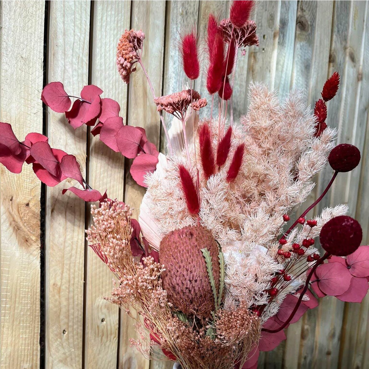 Blumen: Banksia, Eukalyptus, Craspedia, Ranunkeln, Lagurus, Phalaris, Scharfgabe, Palmspeer, Glixia, Asparagus, Broom Bloom_x000D_