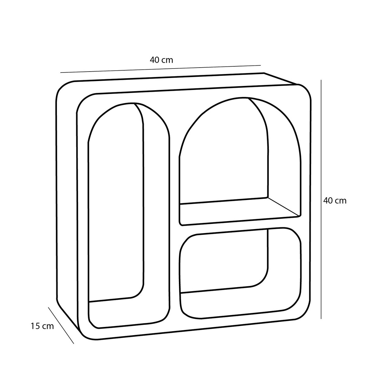 Minimalistisch und elegant: Der Frati Wandschrank von Mica Decorations ist die perfekte Ergänzung für Räume im modernen Stil. Der offene Wandschrank hat eine cremefarbene Farbe und verfügt über drei Fächer in unterschiedlichen Formen, die Platz für verschiedene Dekorationen bieten, ideal! Platzieren Sie beispielsweise Bücher, Bilderrahmen oder Figuren in den Fächern. Damit wird eine kahle Wand garantiert zum Strahlen gebracht! Der Schrank besteht aus FSC®-zertifiziertem MDF und ist 40 cm lang, 15 cm breit und 40 cm hoch und hat eine maximale Belastbarkeit von 6 kg.