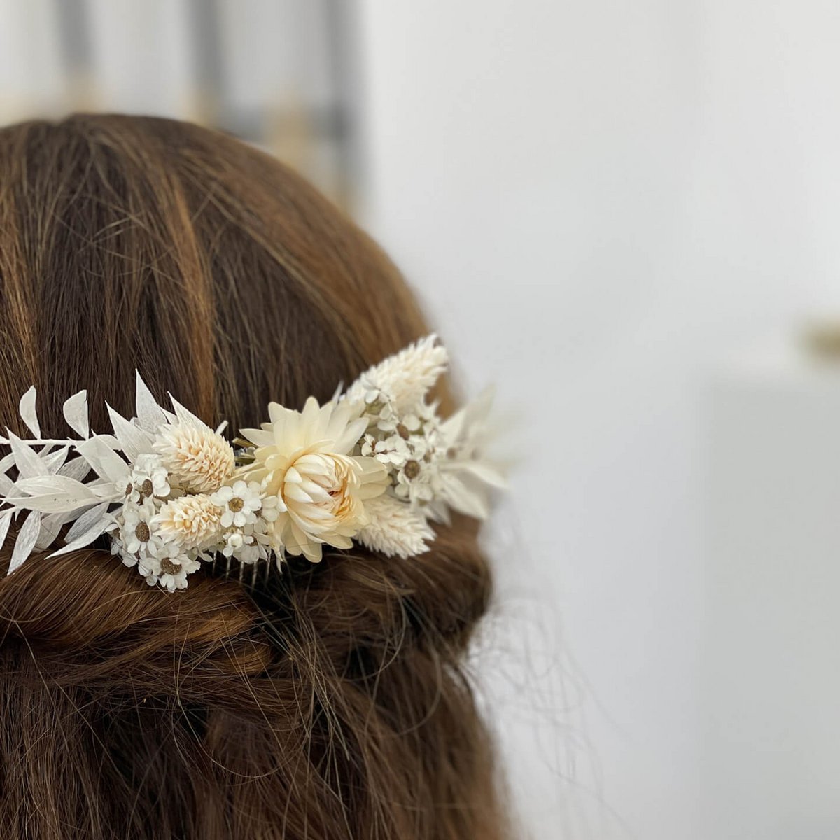 Der Umfang dieses Haarkamms aus Trockenblumen kann aufgrund je nach Gewächs und Größe mehrerer Stiele und Zweige variieren. Meldet euch gerne zu Sonderwünschen. _x000D_