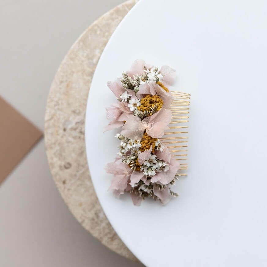 Haarkamm Trockenblumen rosa Frühlingshaft