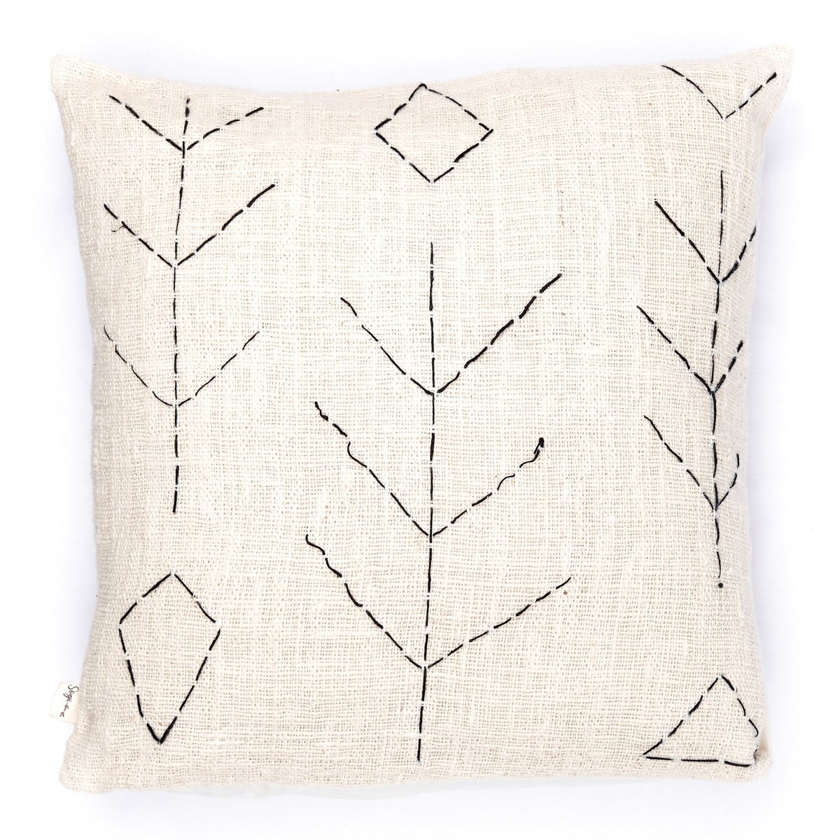 Feine schwarze Akzente in Form von Rauten und Zweigen sind liebevoll eingestickt und verleihen diesem Bezug eine dezente Optik, die sich problemlos mit anderen Kissen und Decken aus unserem Sortiment kombinieren lässt. Ihrer Kreativität sind keine Grenzen gesetzt!
