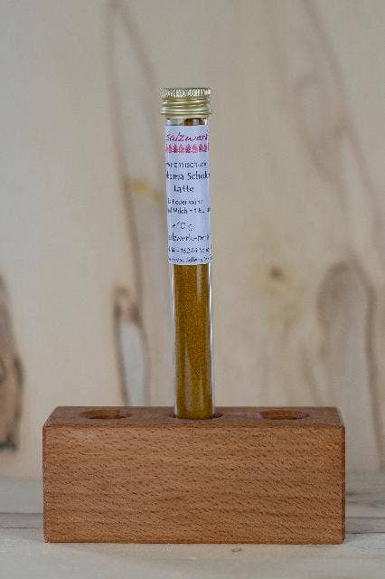 Kurkuma-Schoko-Latte Mischung 10 g im Reagenzglas.