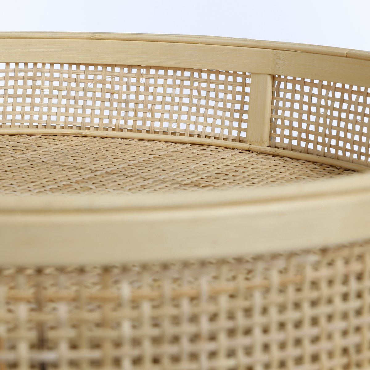 Suchen Sie einen schönen Beistelltisch für die Terrasse oder den Balkon? Die Leandro Gartentische von Mica Decorations passen aufgrund ihres neutralen Aussehens überall. Der Rahmen besteht aus schwarzem Metall und trägt eine runde Platte aus Bambus und Rattan. Eine schöne Kombination! Durch den hohen Rand können Sie alles sicher abstellen, zum Beispiel ein paar Getränke oder schöne Dekorationen. Das Set besteht aus zwei Tischen, die Sie genau untereinander schieben können. So können Sie bei Bedarf alles darauf verstauen. Die Maße der runden Beistelltische betragen H33 x Ø40 cm und H45 x Ø45 cm.