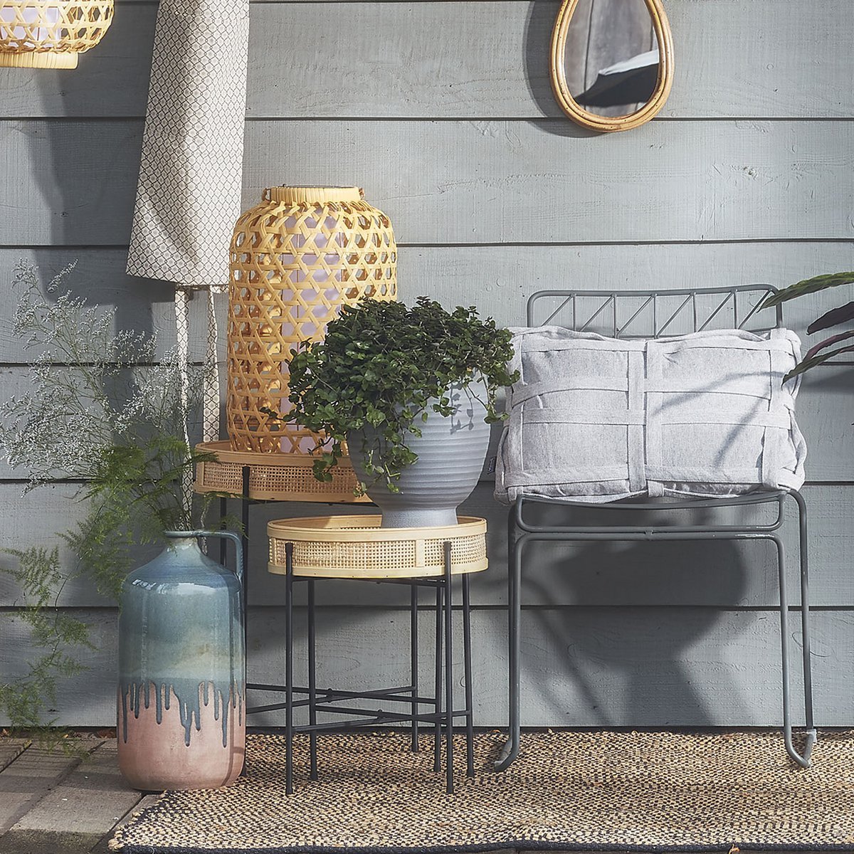 Suchen Sie einen schönen Beistelltisch für die Terrasse oder den Balkon? Die Leandro Gartentische von Mica Decorations passen aufgrund ihres neutralen Aussehens überall. Der Rahmen besteht aus schwarzem Metall und trägt eine runde Platte aus Bambus und Rattan. Eine schöne Kombination! Durch den hohen Rand können Sie alles sicher abstellen, zum Beispiel ein paar Getränke oder schöne Dekorationen. Das Set besteht aus zwei Tischen, die Sie genau untereinander schieben können. So können Sie bei Bedarf alles darauf verstauen. Die Maße der runden Beistelltische betragen H42,5 x Ø35 cm und H53 x Ø45 cm.