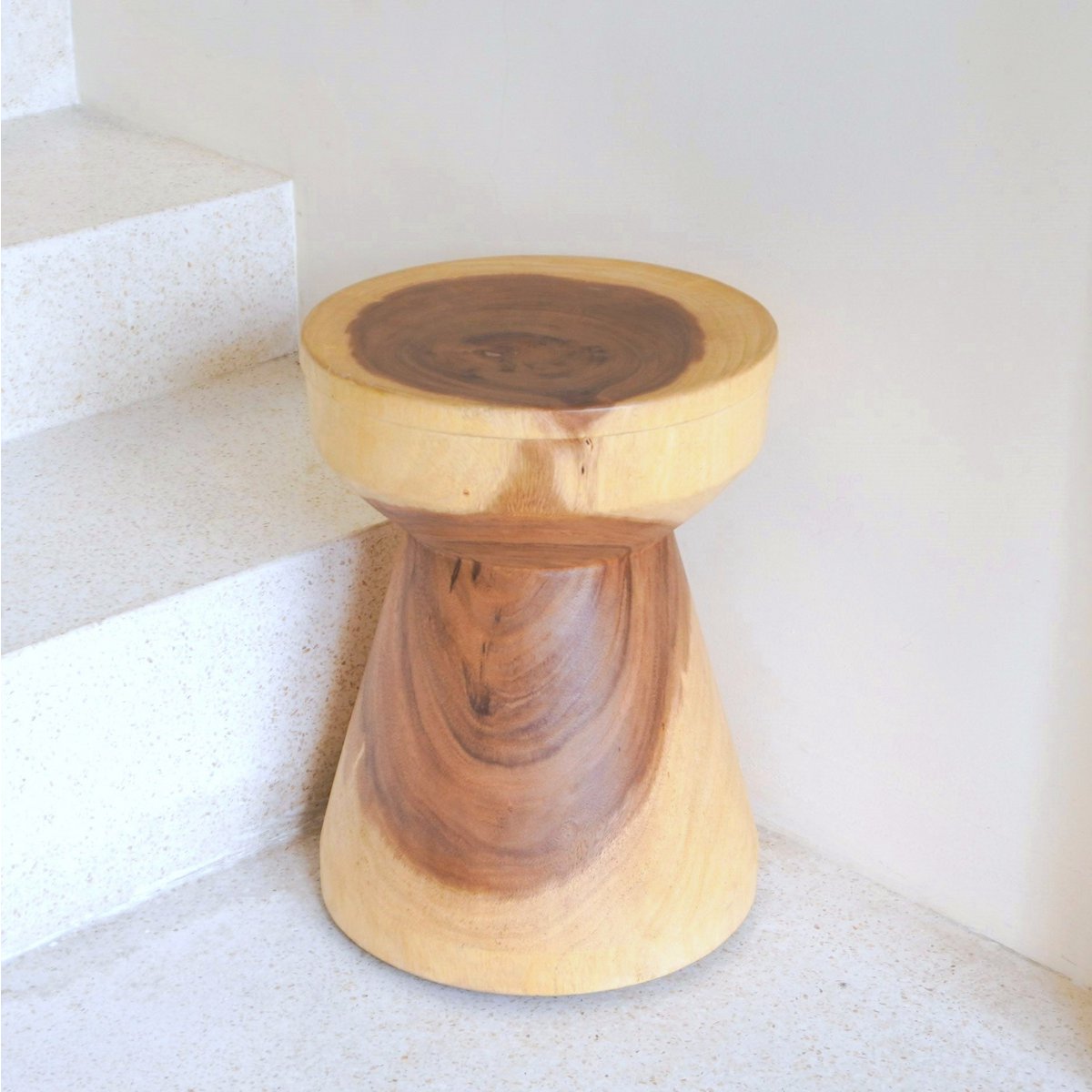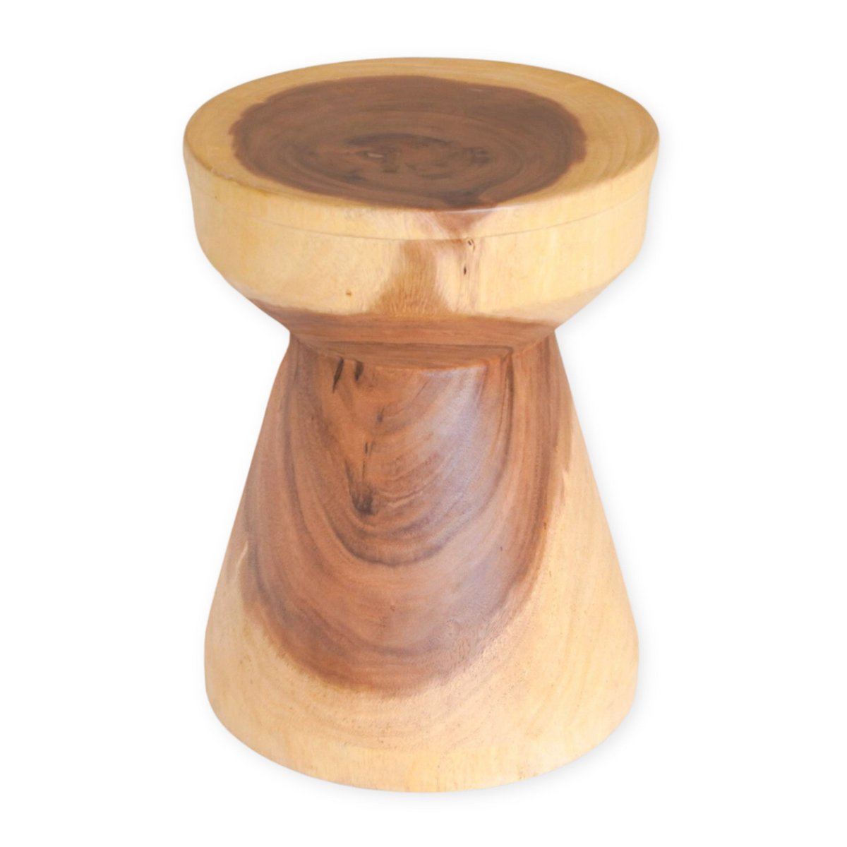 Unser Manado-Beistelltisch wird von Hand aus einem einzigen Stück Regenbaumholz gedrechselt. Die Wahl dieses besonderen Holzes spiegelt sich in der faszinierenden, kontrastierenden hellen und dunklen Maserung wider, die bei jedem Stück einzigartig variiert. Die solide und hochwertige Konstruktion von Manado ermöglicht es Ihnen, ihn nicht nur als Beistelltisch, sondern auch als stabilen Hocker zu verwenden.