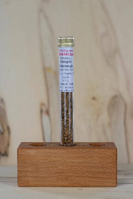 Steinpilz-Kräutersalz 9 g im Reagenzglas.