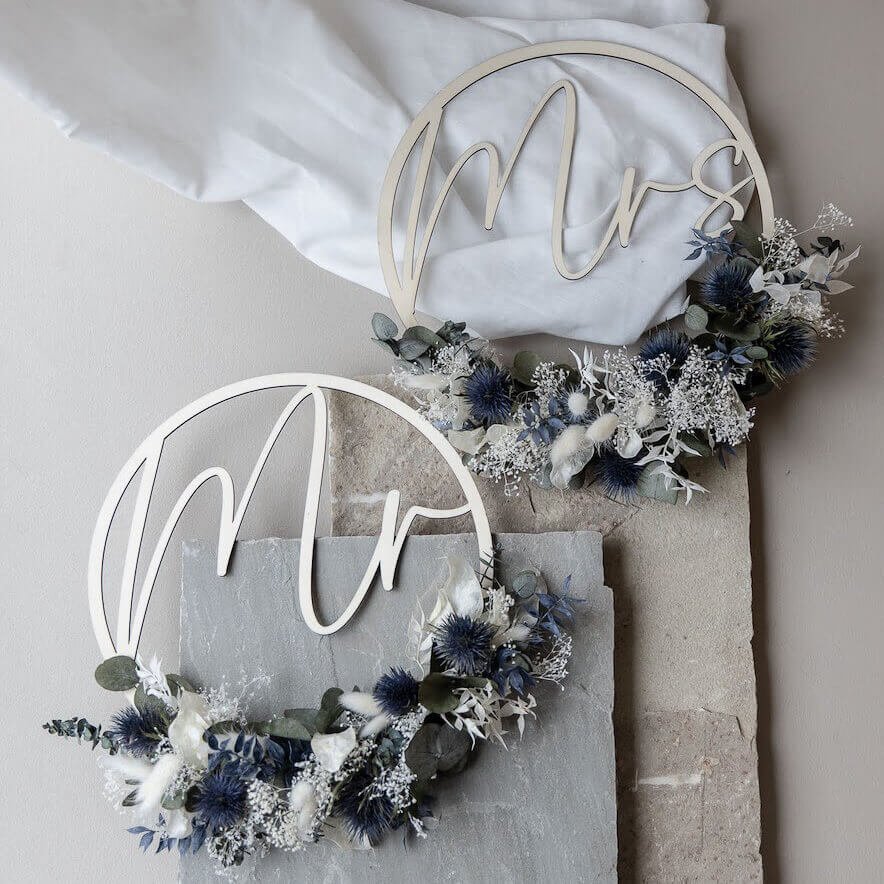 Die wertigen Trockenblumenkränze aus Holz sind eine schöne Dekoration für die Traustühle oder als Geschenkidee für das frisch verliebte Paar. Auch über den schönsten Tag hinaus