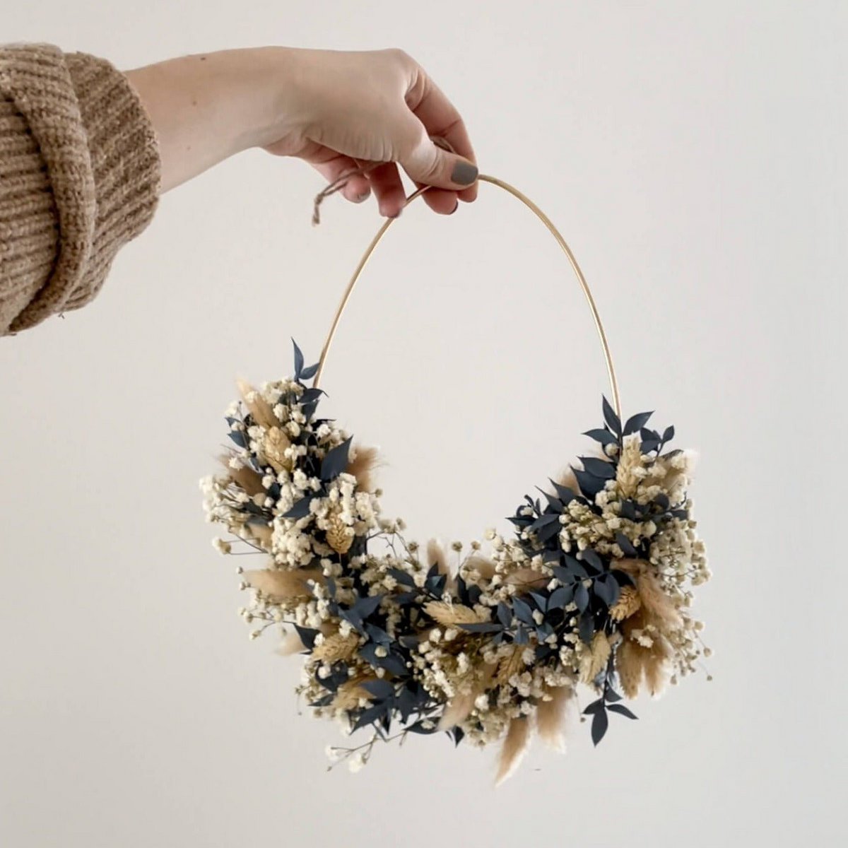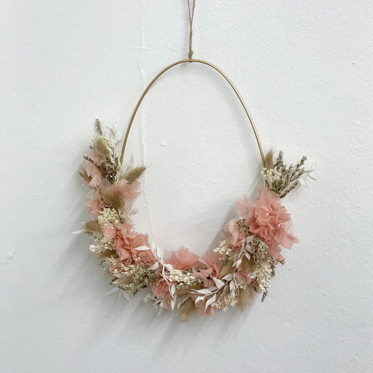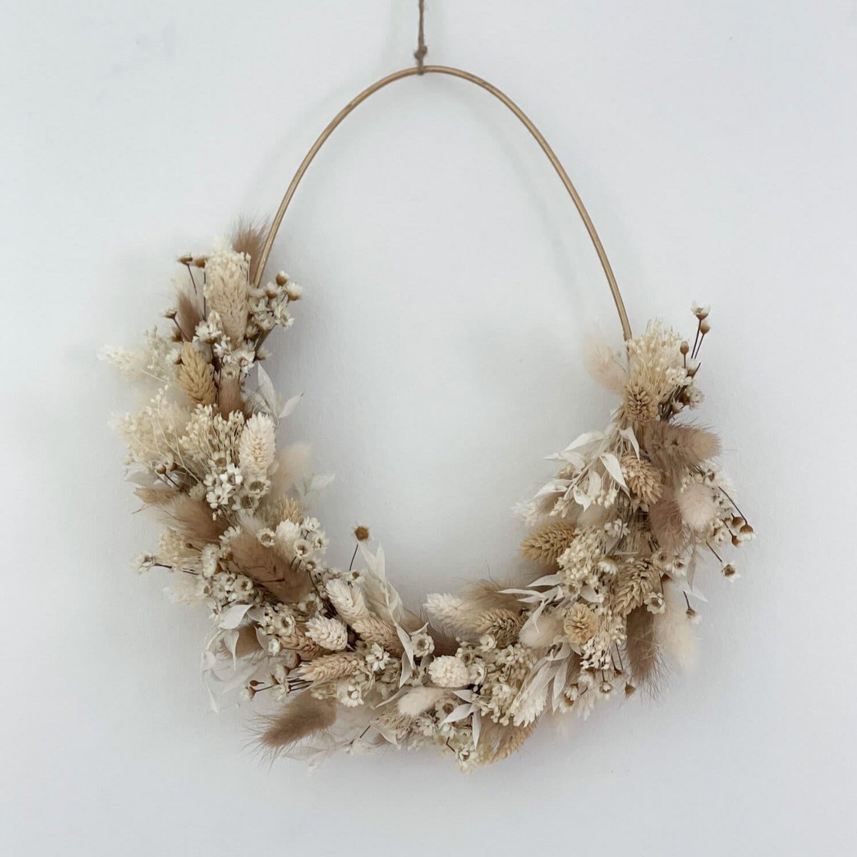 Hol dir dein Osterei-Kranz aus Trockenblumen! Ostern steht vor der Tür. Nach dem langen Winter wird es Zeit endlich etwas Farbe und frühlingshafte Dekoration in dein zu Hause zu bringen. Anstelle eines osterlichen Blumenkranz haben wir für dich einen Trockenblumen Osterkranz in Eiform mit frühlingshaften Trockenblumen zusammen gestellt. Egal ob an der Wand oder fürs Fenster, der Trockenblumenkranz ist die mal andere Dekoration. Frühlingshafte Trockenblumen in leichten Farben und natürlichen Tönen wie Lagurus, Ruskus, Glixia, Phalaris und Schleierkraut lassen die Laune definitiv steigen. Die Trockenblumenkränze sind nur in limitierter Stückzahl verfügbar.