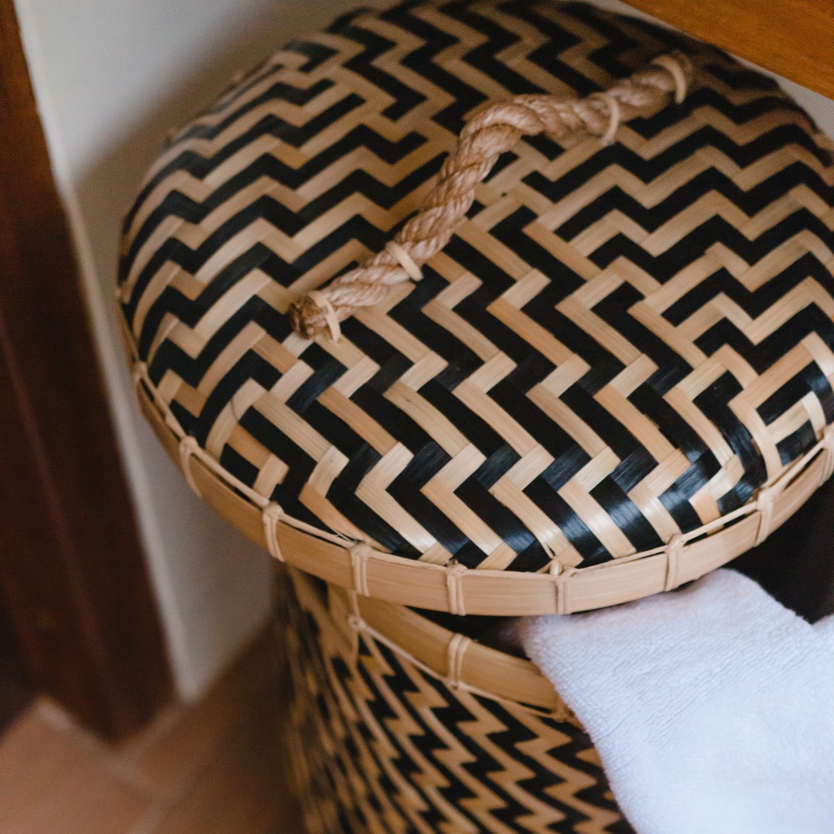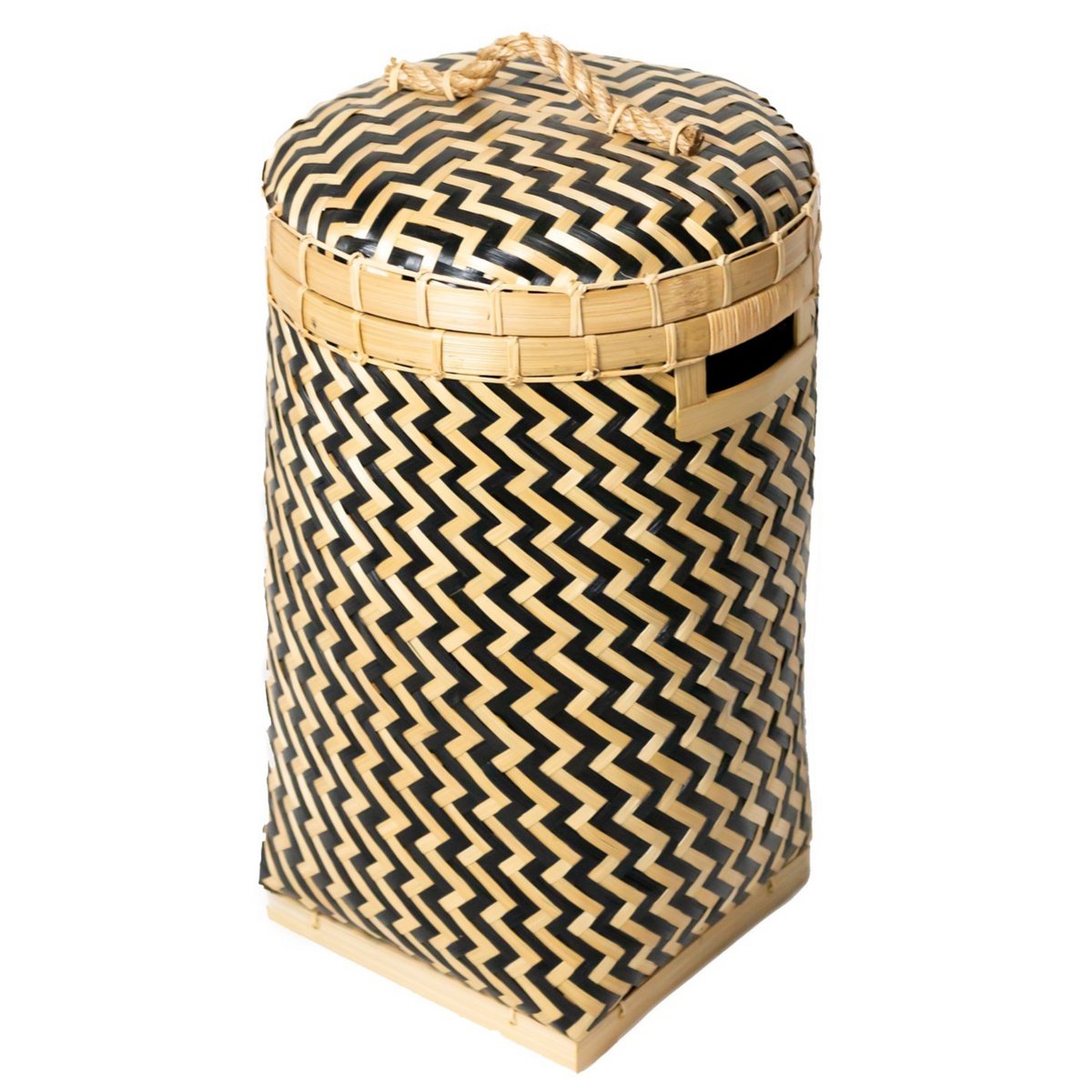 Der dekorative Nabire-Korb ist mit seinem attraktiven zweifarbigen Zickzack-Design ein echter Hingucker. Die schlanke Form vereint auf elegante Weise Stabilität und Funktionalität und der praktische Deckel sorgt dafür, dass der Korbinhalt gut geschützt ist und Ihr Zuhause aufgeräumt bleibt.